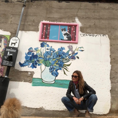 Tucumcari is the most unbelievable stretch on Route 66. Lined with abandoned motels with massive signs. It was notorious for being a rowdy western town with wild saloons and outlaws. You can feel that. I had total reign over it, peering into windows to see totally frozen-in-time interiors. I documented myself all over Tucumcari. I stopped in Santa Rosa, the town featured in the Grapes of Wrath, to take in the sapphire lakes. After, I was ready to get to Santa Fe where I would stay my third night. The drive there was the most enchanting stretch of earth, and then - Santa Fe, what? Now I understood the hype. I decided to splurge a little and stayed in the most adorable boutique hotel El Rey Court. I got dinner at a nearby local spot and it was the most delicious veggie burger and fries I'd ever met. We had the coziest room and our own beds. Mr. Jones had the best rest of his life! The next day I walked to get a coffee and spent some time hanging out in the courtyard. I took my time. It would be Day 4 on the road.